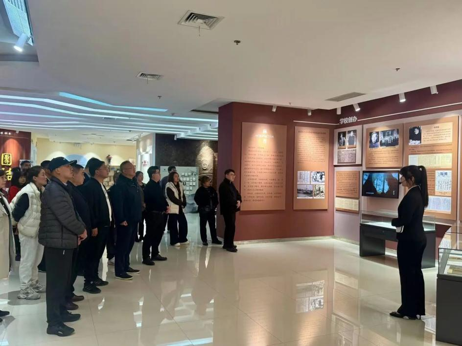 随后,参观队伍前往校史馆。在校史馆讲解员的引导下,大家沿着学校发展的时间脉络,逐一参观了各个展区。从学校的创办历程、办学成果到学科发展、人才培养,一幅幅泛黄的老照片、一件件承载记忆的实物、一段段详实的文字记载,生动展现了学校在不同历史时期的奋斗足迹与辉煌成就。