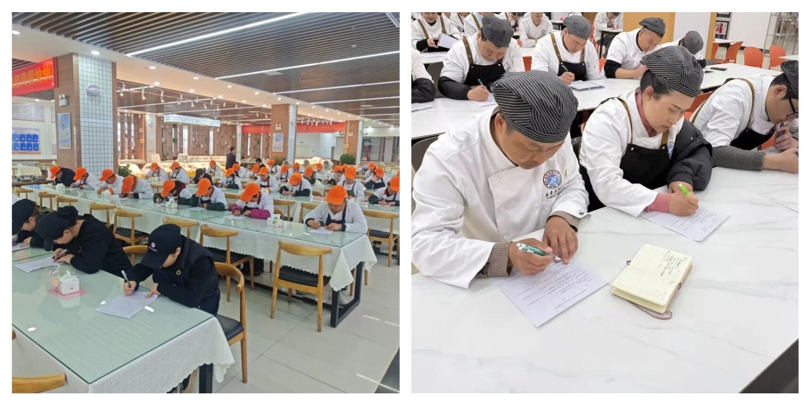 培训结束后,为巩固学习成果,中心现场组织全体参训员工进行了食品安全知识考试。试卷由饮食服务中心统一命题,内容涵盖培训重点及日常操作规范,旨在通过答题帮助员工查漏补缺。