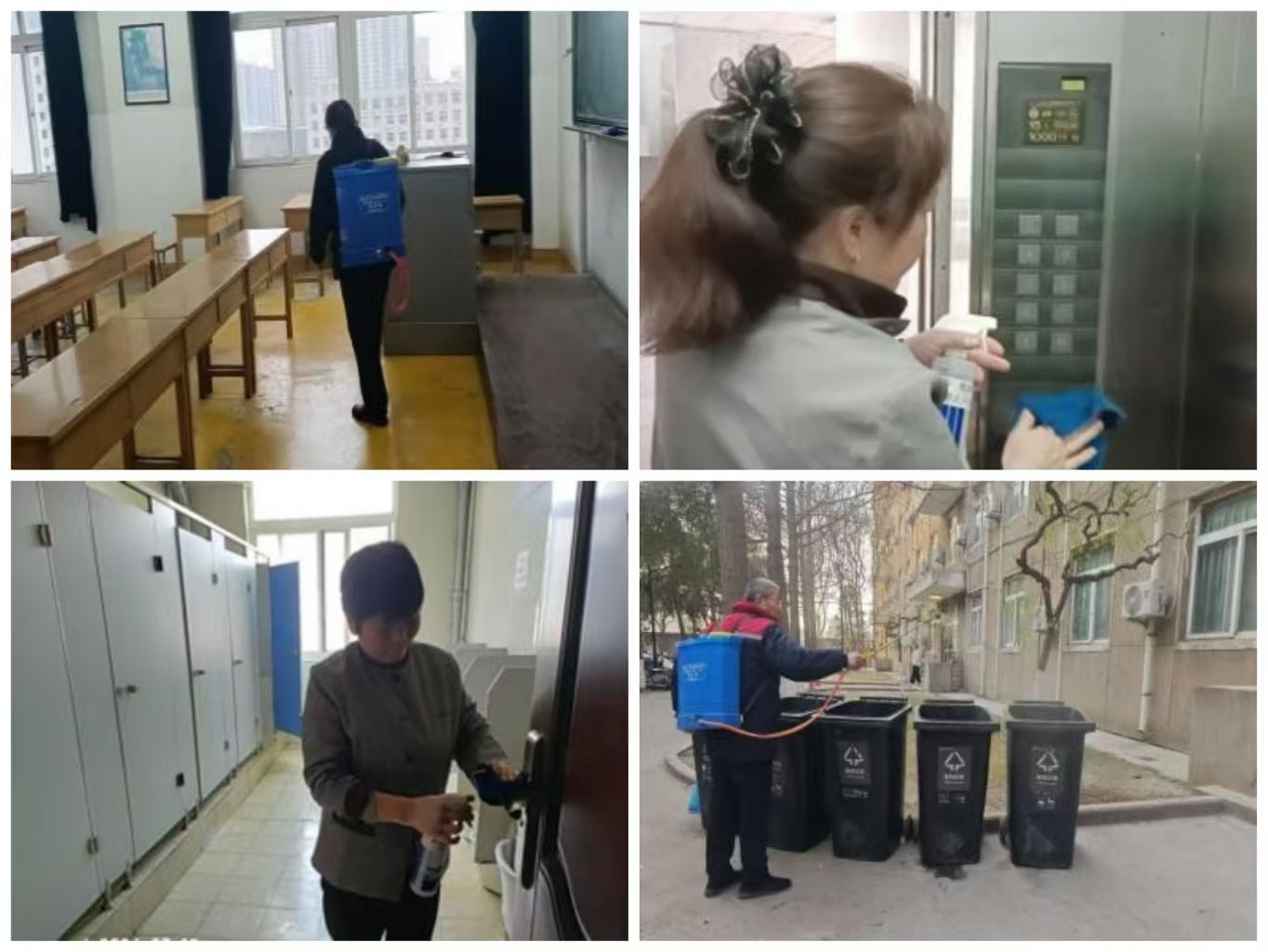 物业管理服务中心将防控工作摆在首位,迅速统筹、精准施策。针对教学楼人员密集、触点繁多的特点,划定消杀重点,覆盖教室、教休室、走廊、楼梯间、公共卫生间等所有公共区域,以全覆盖、无死角、零盲区的标准,切实保障公共区域环境卫生安全。
